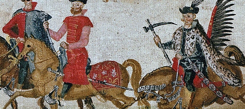 This is interesting. A very early depiction of boot-hilt sabres on this document from the king of Hungary, Ulászló II, 1507.