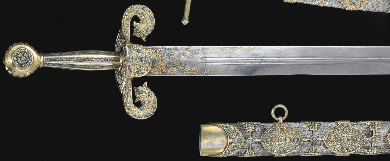 From what I can tell, based on iconography gathered so far, koncerz were of two main types, pommeled with cross/U/8-guards or boot-hilted with cross/L/N-guards. You can see pommeled koncerz on the Stockholm Roll with the wedding procession of Sigismund III Vasa into Cracow, 1605. I talked about the Moldovan envoy's here: http://www.vikingsword.com/vb/showpo...7&postcount=97 http://www.vikingsword.com/vb/showpo...1&postcount=98 Now let's look at some others from the Stockholm Roll. You can see below other individuals wearing the same kind of golden sword with narrow sccabard and lack of knuckle-bow as the Moldovan envoy. Others are wearing swords under their left leg with knuckle-bows, boot-hilts and wide scabbards. I would call these pallos / pallash / palasz since the wide scabbards indicate wide blades for cutting. Attachment 225430 Attachment 225431 Attachment 225432 Attachment 225433Attachment 225434 Now here is a problem... some are in a grey zone. It's difficult sometimes to clearly define a sword as koncerz or pallash. Same probleam as in the case of side-sword versus rapier. For example the swords below, I would define as pallash without hesitation. And they show the Ottoman origins of the wide pallash in Europe. https://www.khm.at/de/objektdb/detail/372961/?lv=detail Skanderbeg https://szablyavivas.blogspot.com/20...ardja.html?m=1 Thury Gyorgy Attachment 225437 Attachment 225439 Attachment 225438 But what about the bottom one in this picture. Shorter than usual, can cut, but still very thrust-centric. Most would say koncerz, but I would say that calling it a pallash is also reasonable, because it would have functioned as one due to its blade length. Attachment 225441 And sometimes you get wide blades in these pommeled koncerz hilts. Attachment 225440 Now for a recap: Effigies http://www.vikingsword.com/vb/showpo...0&postcount=63 http://www.vikingsword.com/vb/showpo...3&postcount=64 Painted art http://www.vikingsword.com/vb/showpo...1&postcount=81 http://www.vikingsword.com/vb/showpo...4&postcount=92 http://www.vikingsword.com/vb/showpo...8&postcount=95 http://www.vikingsword.com/vb/showpo...9&postcount=96 http://www.vikingsword.com/vb/showpo...&postcount=100 http://www.vikingsword.com/vb/showpo...&postcount=105 http://www.vikingsword.com/vb/showpo...&postcount=108 http://www.vikingsword.com/vb/showpo...&postcount=110 in this one you can see the hussar going against the Ottoman lancer. So koncerz vs. lance. http://www.vikingsword.com/vb/showpo...&postcount=113 It also occurred to me just now, after all these depictions in effigies and paintings, that these N-quillons, most likely, actually existed. I initially considered Stroe Buzescu's sword with N-quillons as artistic license or a unique specimen due to "eccentric rich guy" sindrome. Se here: http://www.vikingsword.com/vb/showpo...5&postcount=61 Now it seems, it may not be so implausible. |