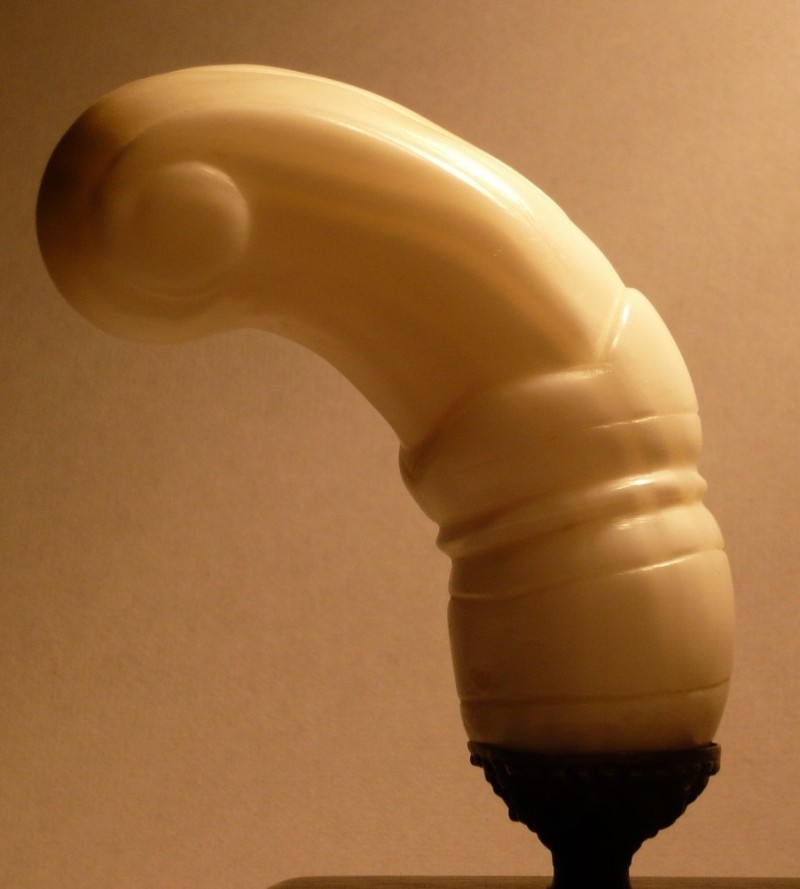Atm. I tend to agree with Wouter: I'm still indecisive, but after seing the phtographs Rick linked to, I'm leaning more towards clam than bone. It's not however TOK-TOK. Bone against glass goes PLOK-PLOK, while clamshell against glass goes KLINK-KLINK. :D The problem with onomatopoeia is the same as with the hot/cold-distinction: They're both very subjective.. :D I still say torch it - it's the only way to know for sure! If dissassembly is not an option, I guess comparing it with the sound of a stone against glass, is the next-best thing: They should sound about the same: both harder than bone. - Very cool discussion. I'm very grateful to have learned this and seen the above photos. Thanks everybody! All the best, - Thor |