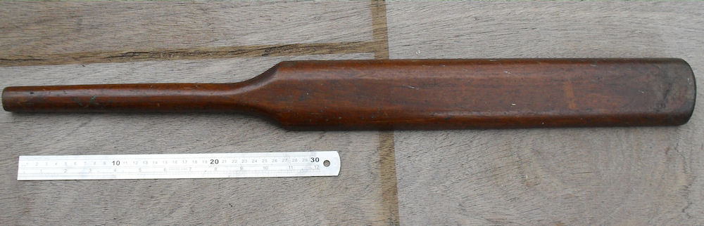 Might be Mahogany... Do you notice that on the 'face' of the cricket bat shape, it has two faces and a central ridge that runs right up to the top of the handle? That was what decided me that it wasn't a kids cricket bat. :shrug: |