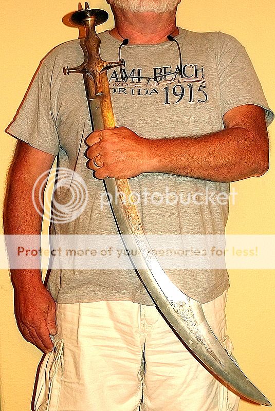 Hello all! Upon my skimming of interesting swords, I noticed a strange, yet wondrous weapon. The sword is about thirty-nine inches in total with a thirty-one inch blade and a hilt with gold and silver. Based on the flange at the end of the blade, the sword might be a type of kilij and from the owner's claim, it might be a tool used by executioners during the eighteen hundreds. I would like to hear your thoughts on this item. Is it worth obtaining as an actual historical piece or is it like the kora I posted earlier as a souvenir.