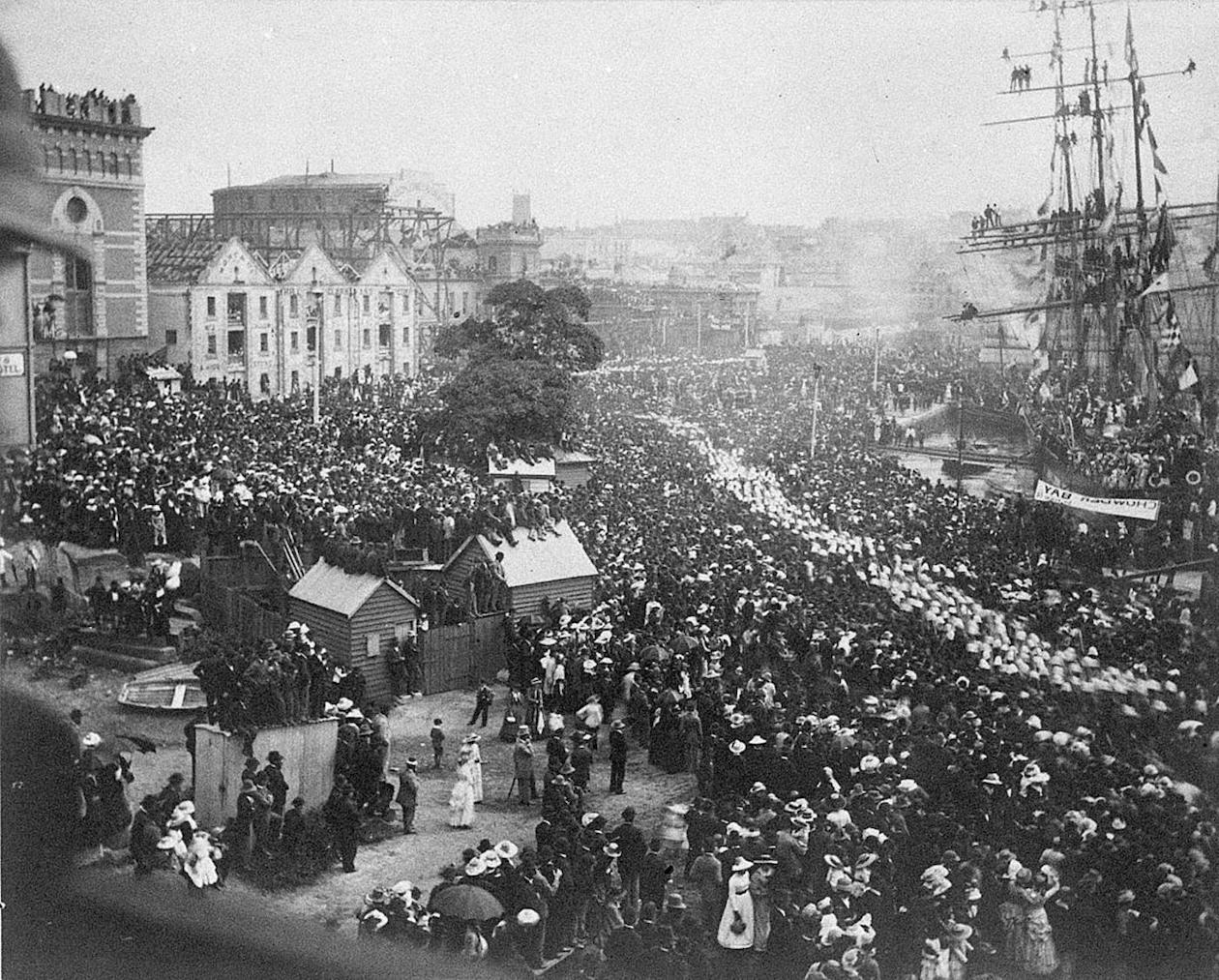 Here are pictures of the sword, and of the NSW colonial force being farewelled before embarking on their ship transport at Circular Quay in Sydney. They wore red tunics and white helmets, which they quickly swapped for more appropriate attire on arriving in Sudan. This is the crowd watching the boys march along Circular Quay. The crowd was estimated at 100,000 (a huge number considering the population of Sydney at that time was about 700,000). Attachment 239380 And here are more pictures of the sword. I think this blade is of local manufacture rather than Persian. The silver decorations of vegetation and birds are tarnished and somewhat difficult to photograph against the very dark blade. I can provide more pictures at higher magnification if you wish. The gold inscriptions are not very well done, again suggesting local work rather than Persian. If someone can translate these, I would be very grateful. Attachment 239381 Attachment 239382 Attachment 239383 Attachment 239384 Attachment 239385 Attachment 239386 Attachment 239387 Attachment 239391 Attachment 239389Attachment 239390 And here are the tags attached to the sword when it came, giving some of the history. Attachment 239392 |