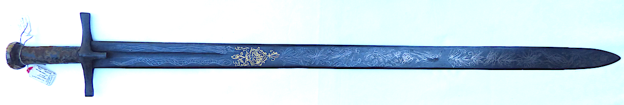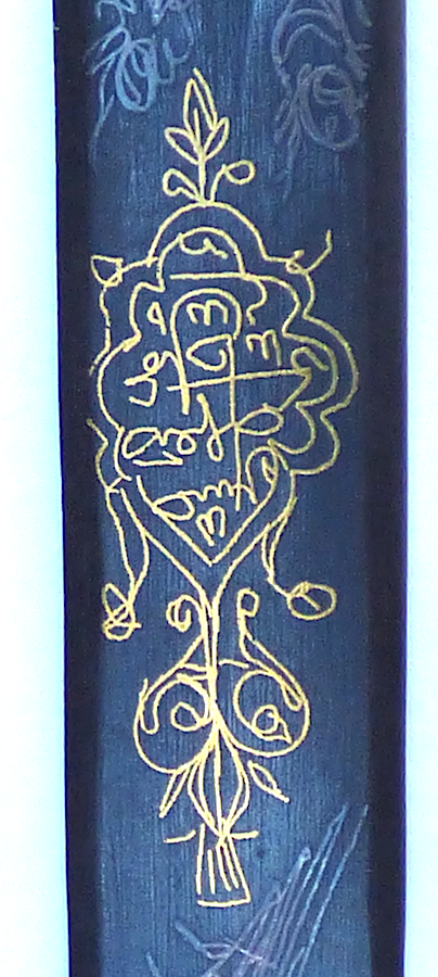 I'm wondering if these may actually be decorative elements added by a prior Australian owner--snakes, flowers, leaves, etc. are common motifs in Australian Aboriginal culture. I bought this one because it struck me as being very unusual. I would like to hear what our kaskara experts think. This is the only picture from the auction and I don't yet have the sword. . |