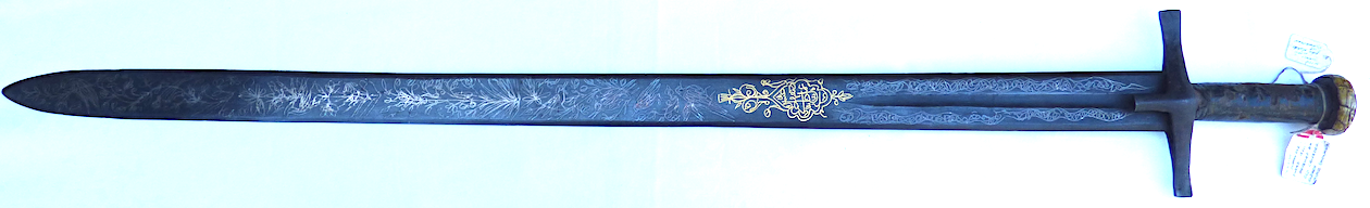 This is the second of my purchases from the Australian Arms Auction this past weekend. The kaskara was said to have been brought back by an Australian army contingent around 1900. It has a dark, patinated blade with interesting gold and silver inlays. I have not seen similar on a kaskara previously. Has anyone else seen similar decorations on a kaskara?