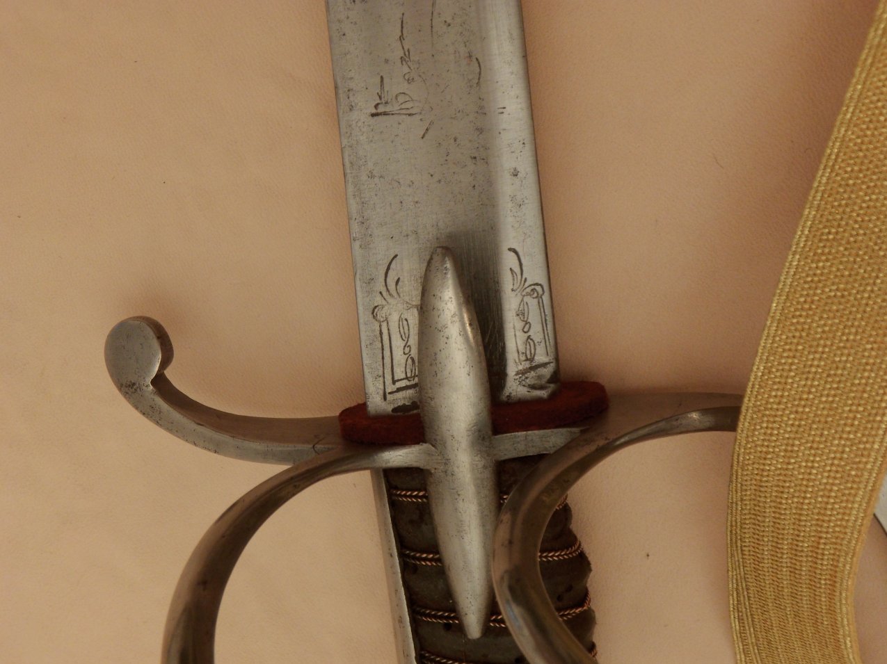 Officers' private purchase of swords may or may not be marked, and many blades were imported to meet the demand for blades. Also I say the sword is French, but it could have just as easily belonged to one of the officers from another nation serving in the French Army. As a side note, I have seen one pamphlet addressed to French officers following the invasion and take over of Solingen, translations for French to German sword terms for those looking to buy a new sword Quote: