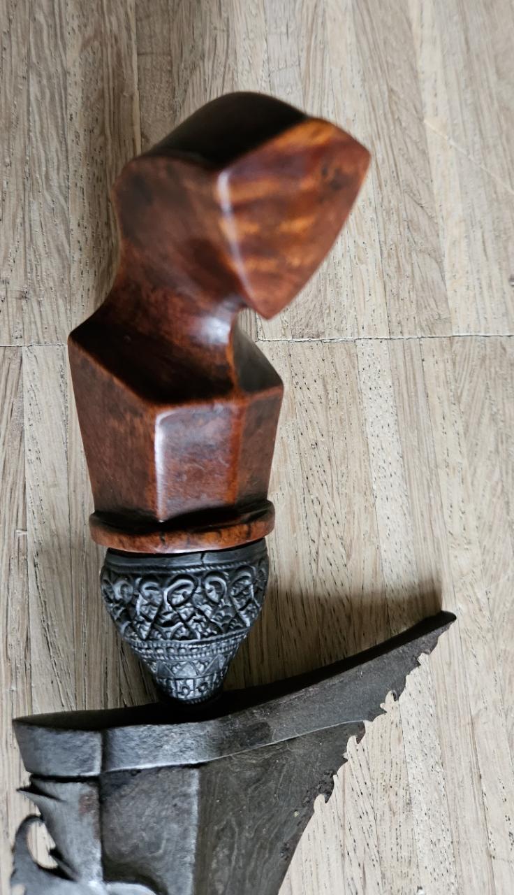 Please post close-ups of the wood under strong daylight after some TLC. This will help to estimate the quality of the timber utuilized for the fittings. The hilt definitely is of high quality material. Also please take close-up of the crosspiece before cleaning/treatment - sometimes a "shadow" from the pendok can be discernible under strong light. Regards, Kai |