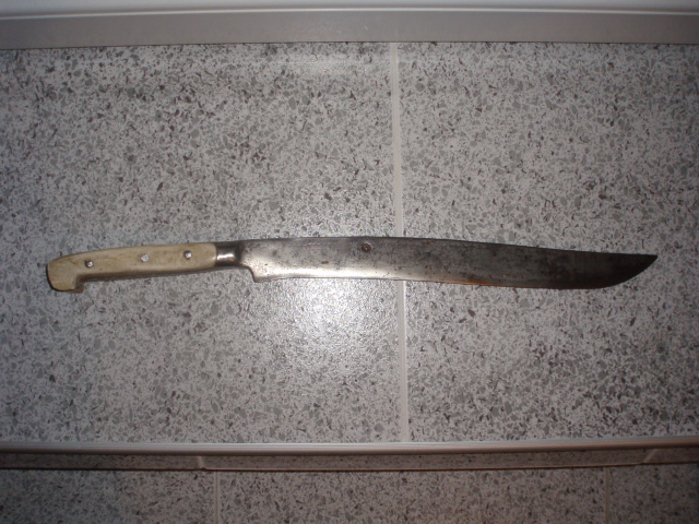 “And in the third picture some yataghans from Montenegro 18th century” Regarding those”Montenegro” yatagans, one in the midle is a albanian made 20 century scam yatagan, it is not real neither is a battle yatagan. Albanians made even better examples in 20 century for scammings collectors, that one is 100% fake. Two weeks ago a guy ofered to me two of those for sale, they were sold to famous general in balkan, and now he is trying to sell them, i told him they are fake, he was furious , he must payed a lot. Other two on the sides are boka kotorska workshop. |