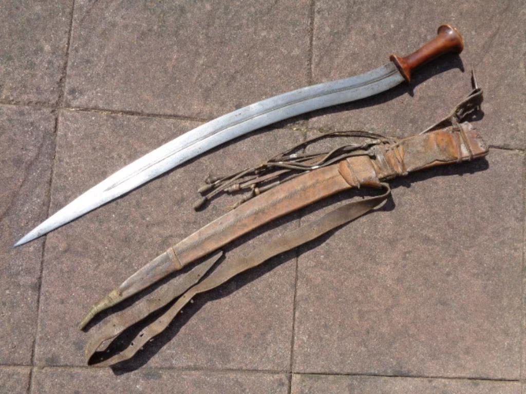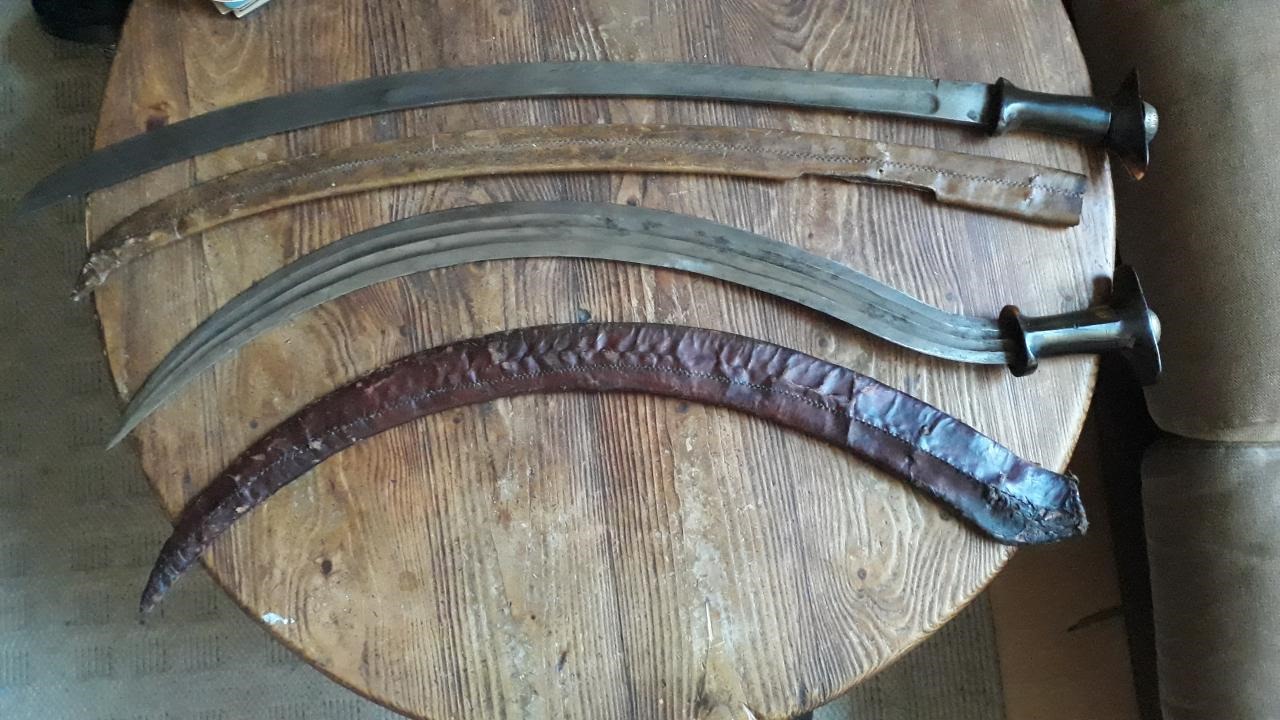 Attachment 250697 I have one of the much more sickle shaped shotels and this one, and they are incredibly different things. The one in the first picture is quite thin and light, and can only be used one way, with the curve on the outside, whereas the sickle shaped sword shown at the bottom of the picture below is thick and hefty, and could be used in either configuration with the curve facing out or in. Attachment 250698 Of course, the top one in that picture would be a gurade, and Ii guess this one would be a saif: Attachment 250699 |