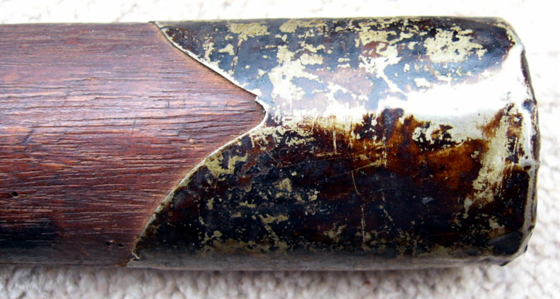 The Hilt as can be seen is very unusual in that it is fully decorated. Scabbard mouth appears to be tarnished silver, and the scabbard bands are brass.
