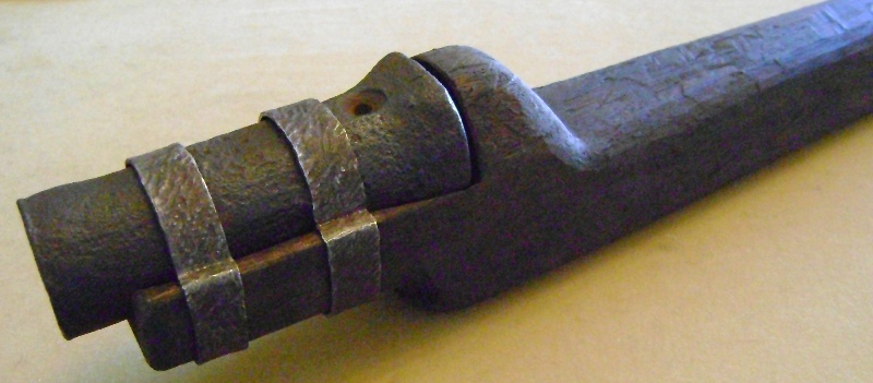 Congratulations, Fernando! Finding an example that is clearly marked is a bonus. I also like the way that the maker designed and made this thing with some thought as to the way it is supposed to fit securely into the stock. Looks great in the reproduction wood "tiller" that you had made -- some tool marks on the wood (see the two examples with stocks in Howard L. Blackmore's book), some stain and linseed oil rub to the surface, and a hammered iron barrel band or two and you're all set to go!