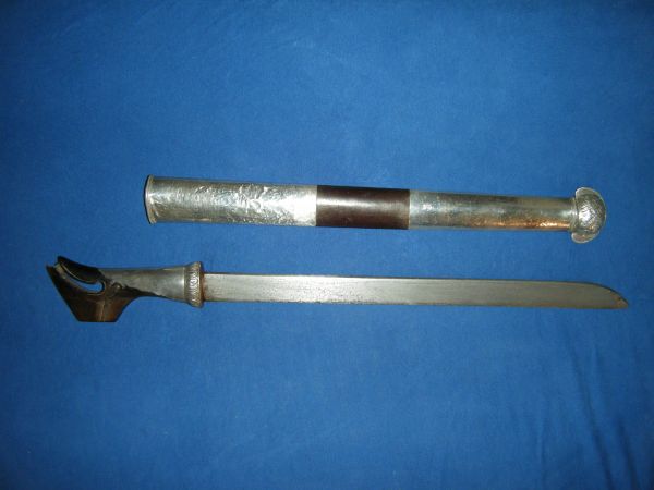 I have bought this Alamang with horn handle and low grade silver fittings, the blade is fine laminated. 59,5 cm inside the sheat, blade 42,5 cm and 9 mm thick at the base. Your comments are very appreciated.