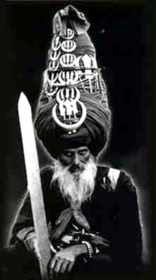 therefore, the absolute minimum is to have a kirpan; loosely translated as a single edged blade. this can be anything from 3 inches to 3 feet. Traditionally, a Sikh would carry his kirpan, as well as many other arms. if you look at the pictures I posted above, the first picture (left) you can see that as well as being armed with chakrams, he also carries what appears to be a pistol under his left arm, a firangi and a chrillanum in his Kamarcussa (waistband). one of these may be his kirpan, or be supplementary to it.