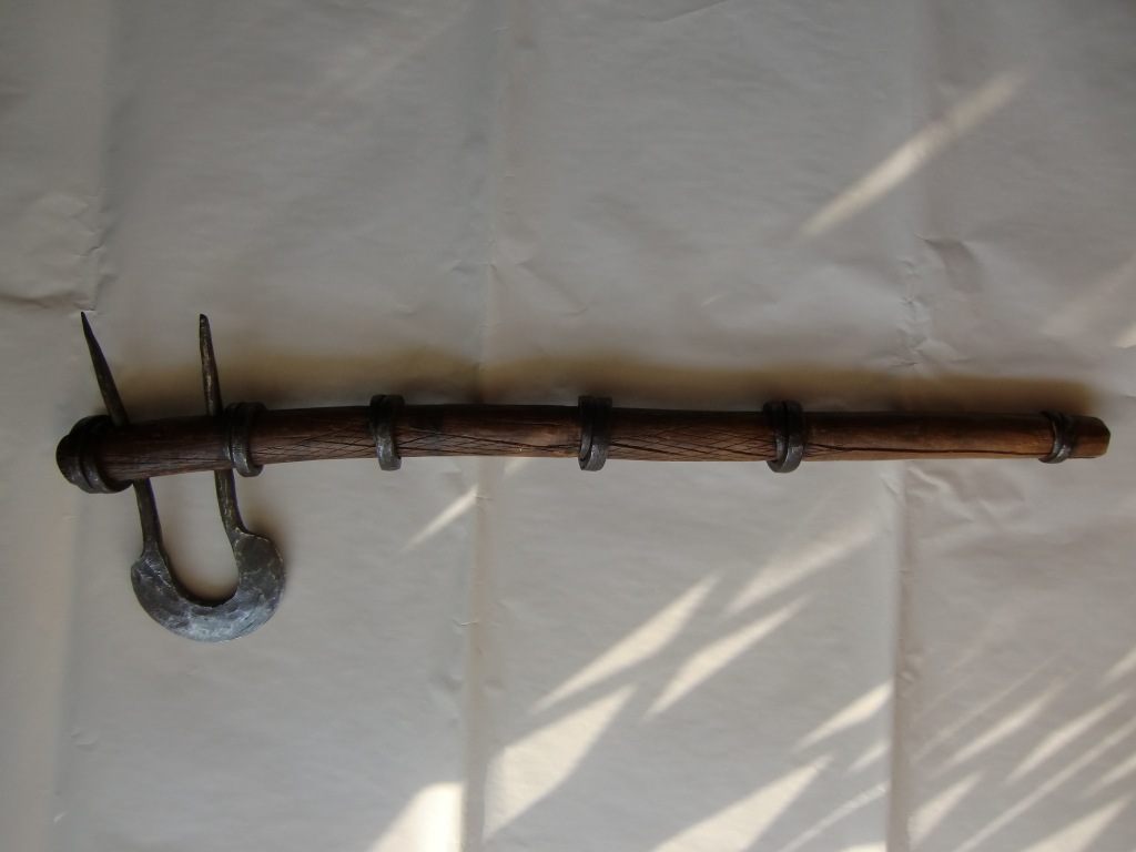 The two big axes from below (second one with rings is very heavy) are from the northern part of Nigeria. The third from below (small one with monkey head) should originally be from Chad (acquired in Abuja), the second small is from Nigerian Kaduna State. The axe which is in the top right corner of the picture should be, acc. to www.spearcollector.com, from Burkina Faso.