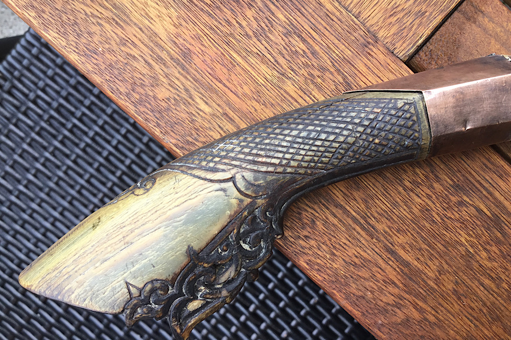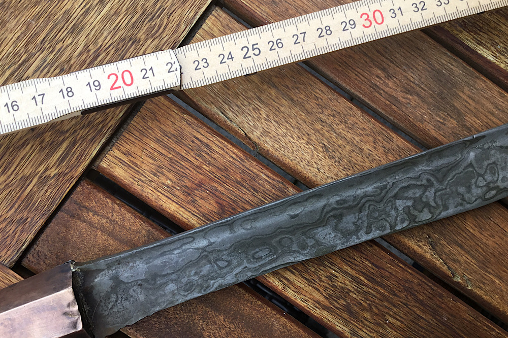 I got this cojang with a nice laminated blade. I think the copper is replaced later to pimp it up. Does not look fitting to the style of the grip.