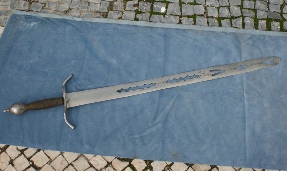 ... a Portuguese nobleman, military commander, navigator and explorer regarded as the discoverer of Brazil in 1500. Originally sacked from a tomb in the church of da Graça, city of Santarem. After being wandering out there for a while, was first acquired by a well known family, then passed on to two distinct private collections and, in the sixties, ended in Rainer Daehnhardt collection, where is kept in a mahogany+acrylic+glass vitrine, in a manner that it may be observed by all angles without having to be handled. There are only five of these swords known and referenced, which model is depicted in the São Vicente panels. (Use full resolution, for better detail) http://en.wikipedia.org/wiki/File:Lagos40_kopie.jpg Its condition is rather bad but, due to its maximum importance, the owner never attempted and doesn't intend to restore it. The blade is broken in two parts and the tip is missing 4-5 cms. Its present length is 78 cms. . Last edited by fernando; 15th November 2012 at 02:15 PM. |