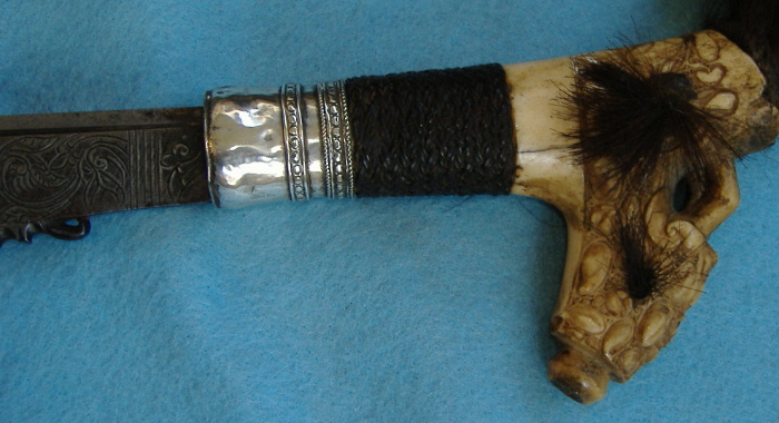 I am not that deep into the classification, so I always wait for others to do the name game. I a pretty good in Oooohs and Aaaahs, and awesome cool sword... ! Here is a picture that you probably already know. Wonderfull that all the orignal hair is still there. Do you have some close ups op how the hait is connected to the scabbard ? Best regards, Willem Last edited by asomotif; 19th May 2013 at 12:56 PM. |