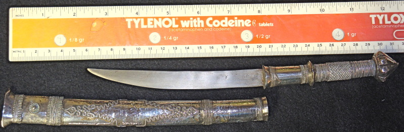 I got this dha which is small but to scale and perfect in detail and construction. No laminated blade. One friend thinks it could have been made for a woman. One of the pictures shows that it is about 12.5 inches (also in cm). What could you kind folks tell me about it?
