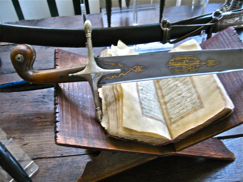 I'm very please to introduice you my last input since long ... my dream, my wish was to have a "Pala" until now, either price, either quality, or both ... leave the matter without solution but now, IT'S AT HOME .... fine antique, ottoman kilij, dating in 19th century. 1237 Hegire either 1821 Gregorian blade of 71cm (28") huge, and well balanced, pleasure to hold it in hand. the blade t-shaped spine, with gold koftgari, owner mark and writing (Turkish ... per anticipation THANK YOU ZIFIR ... ) on both sides of the blade. Blade is in good condition, just a few areas of rust and pitting In blade closeup shots we might clearly see fine Damascus pattern coming through (Turkish ribbon, as per my appreciation) Nice hilt in very good condition, and in traditional ottoman style, silvered, or silver (?). golden brown rhino grip, with few imperfections on, an old crack in one area that has been repaired long ago traditional "pala/kilij" scabbard in good condition looks, original: - leather over wood, - with ottoman style brass stitching and - nice silvered, silver (?) mounts, - accompanied by double-sided rings along - leather has some scratches, small what seem to be a burned/rubbed area. "bouterolle" looks to be a masterfully done replacement completed some time ago but matches the other original elements very well. that for "my" description, but as usual, your comments, advices, appreciations are very welcomed ... indeed ![]() à + Dom Last edited by Dom; 7th April 2011 at 06:14 PM. |