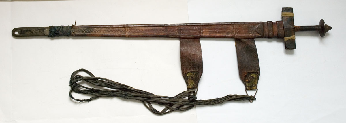 I've got recently a lot consisting of several swords, among them this Takouba. All of the swords have old collector’s labels in German indicating where and when he has acquired them. On the Takouba label is written “April 84”, and what I believe “Tuareg Schwert” (Tuareg Sword).