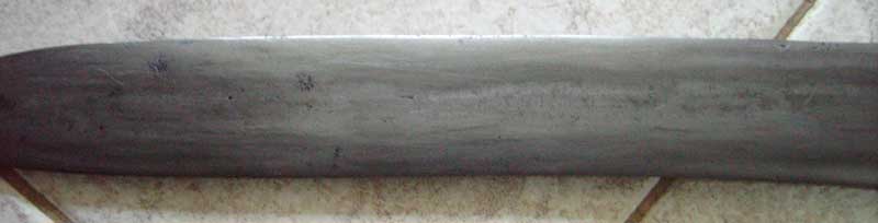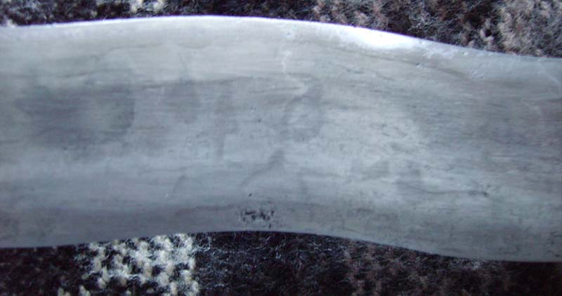 I have etched the blade but there is something strange: the area near the gangya shows a clear lamination, but the rest of the blade is black!!! Anyway, even if the pictures are quite bad, you can see a nice lamination. Maybe this is due to many and many deep polishings of the blade that have removed the "superficial" steel, and so the original lamination that is something like you see near the ganya???? Any comment is welcome and appreciated