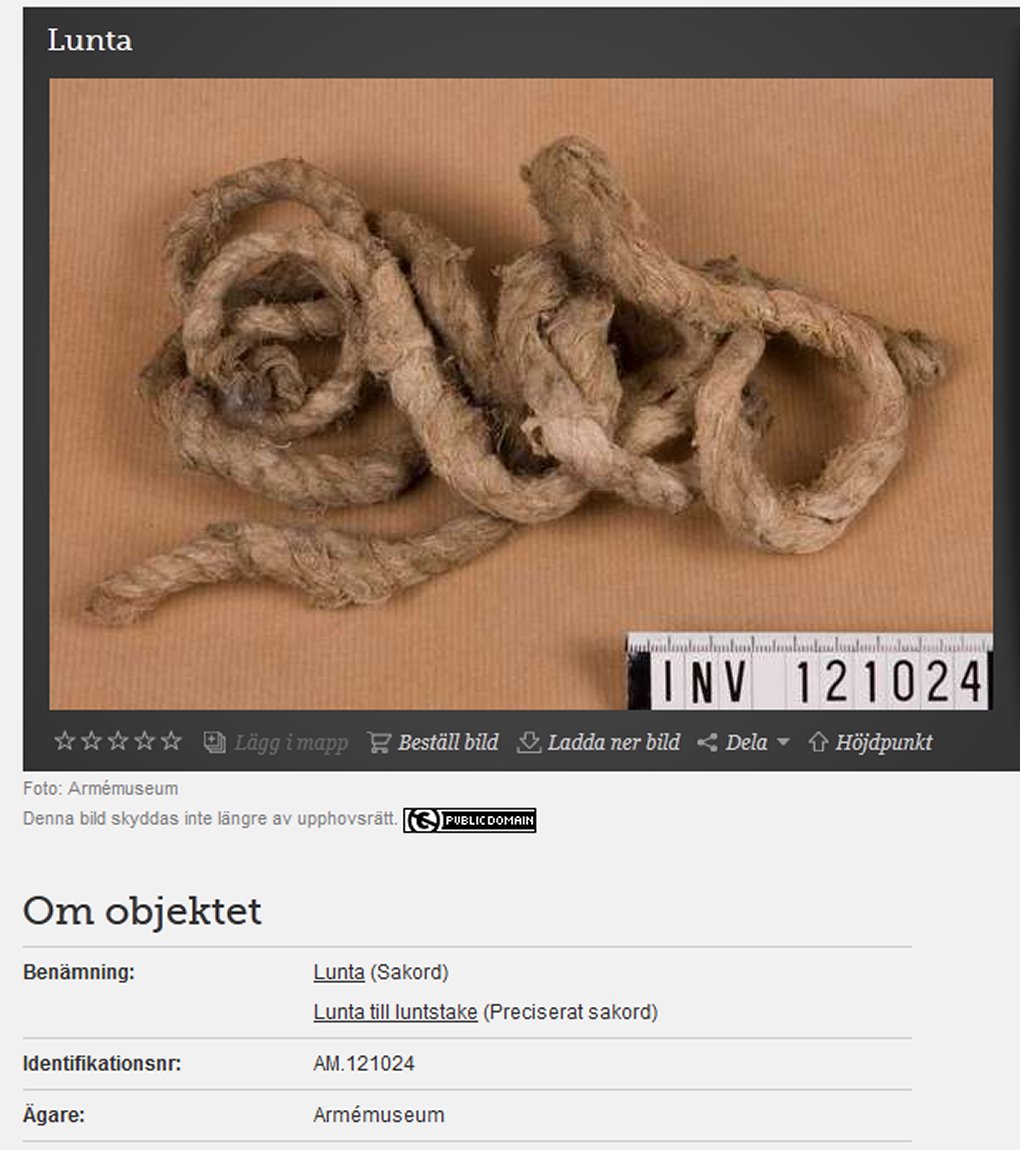 Default A Bundle and Lengths of 17th C. Matchcord, Armémuseum Stockholm
