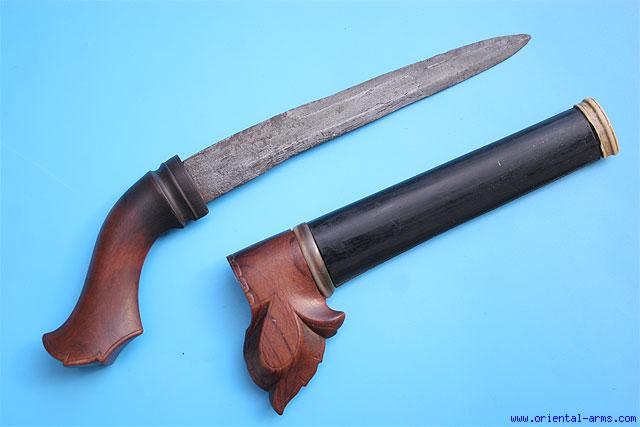 BTW the piece pictured in post #5 is a typical Kelantan style badik and looks like a nice one. Good ones are hard to find. If you have the scabbard I'd love to see it. Also, the piece in post #3 now belongs to me. Such double edged blades are almost certainly a European influence adopted from Western military style blades. |