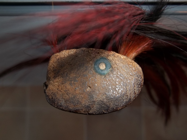 managed to acquire an axe. The auction description has "An exceptional 19thc Naga headhunters dao axe - sword from Assam or upper Burma." Any further info would be greatly appreciated. The item is 30 inches / 76 cm in length. I have attached some photos. There is a shot of the end of the handle which has an odd ring. thanks |