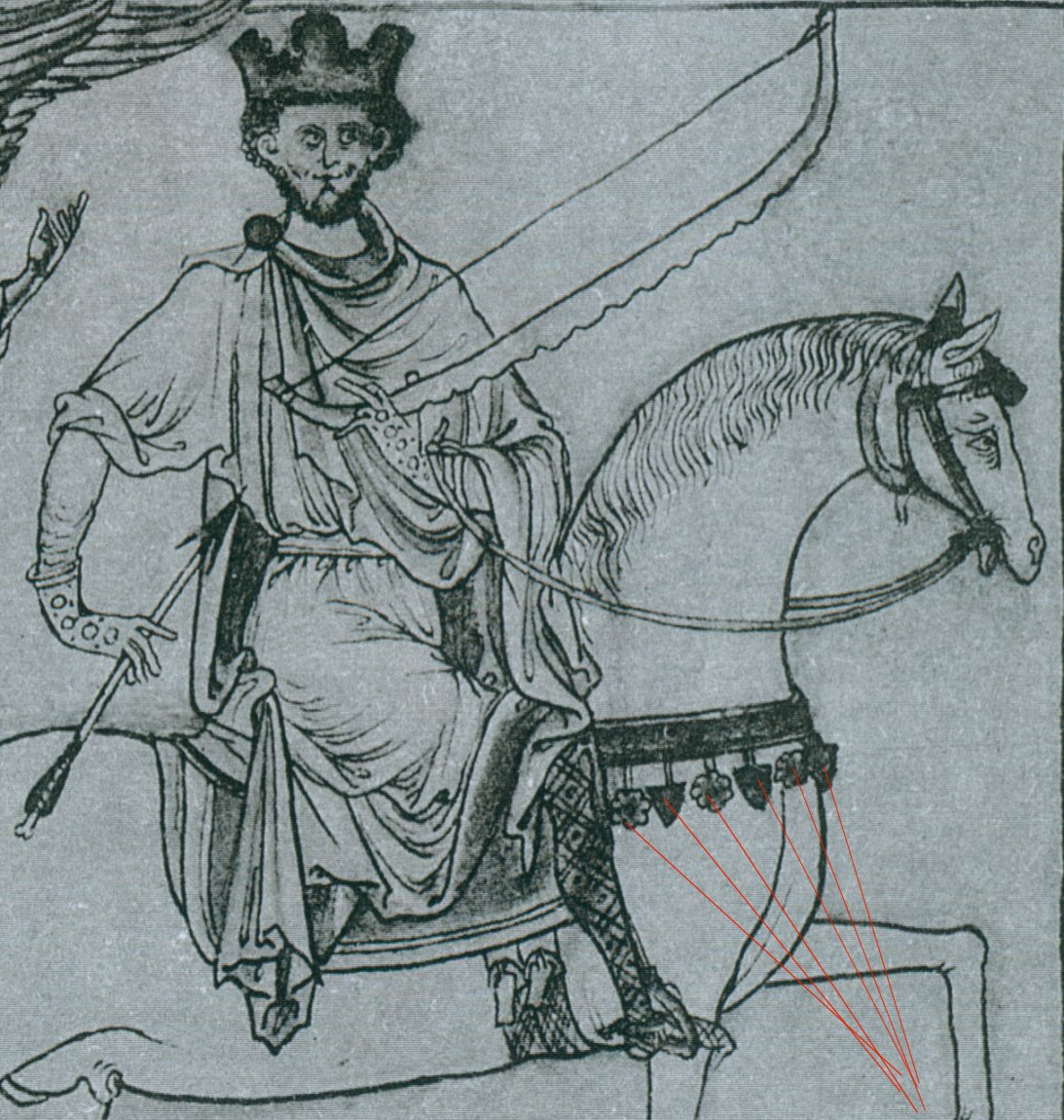 it is noticable that the pendants are frequently of poor quality and may well have been used by retainers, rather than the Knights and nobles who displayed their arms on cloth horse covers( trappers) and on their own surcoats, banners, etc. Even their saddles might be painted with their coat of arms.