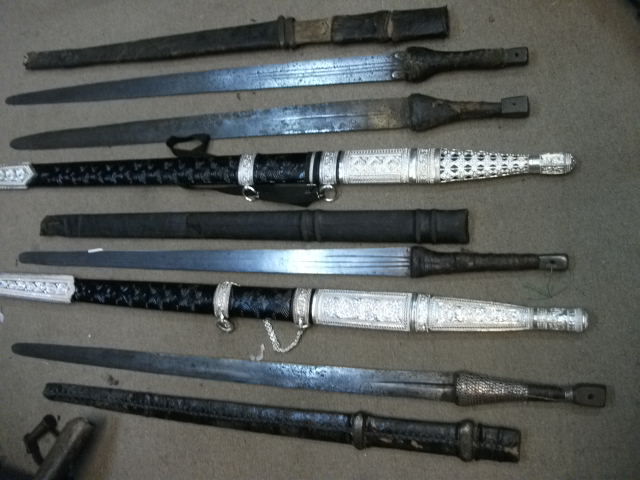 What you are saying is systematically correct, fashioning a grip or hilt that is serviceable is a simple affair, so a rounded handle would serve well. It is of course understandable that a weapon being at least somewhat a status item one would not want just a crude lump of wood, so design and decoration would be employed accordingly . I tend to dislike the cavalier description of 'tourist' item for ethnographic weapons at large as in many, possibly even most cases, these weapons are used in at least some degree as traditional accoutrements among tribal peoples. I think these somewhat crudely fashioned items fall into that traditional category, while the touristy items are obviously too fragile and focused on bling for combat or actual use. In many of these regions, edged weapons (often collectively termed machetes by journalists) are indeed still used. |