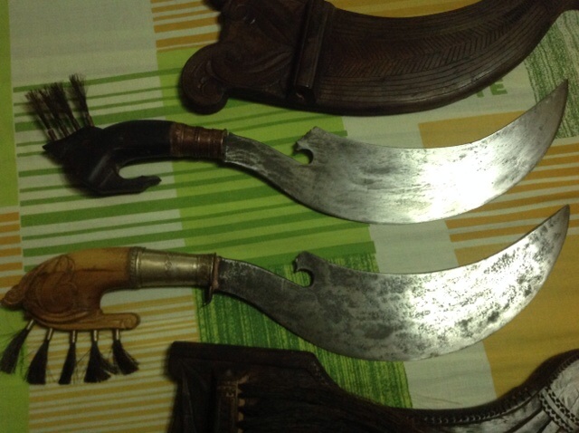 HERE ARE TWO KNIVES SAID TO BE FROM BINACOCO THE FIRST ONE HAS AN 18 INCH LONG BLADE. THERE IS SOME SIMULARITY HOW OLD THEY ARE I DON'T KNOW.