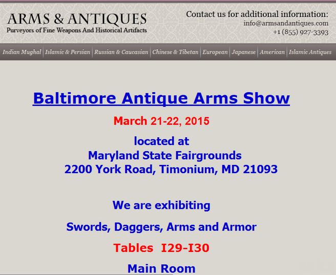 We will be at the Baltimore Antique Arms Show this weekend Friday-Sunday. Please come out and say hello. Tables I-29 and I-30 in the Main Room. |