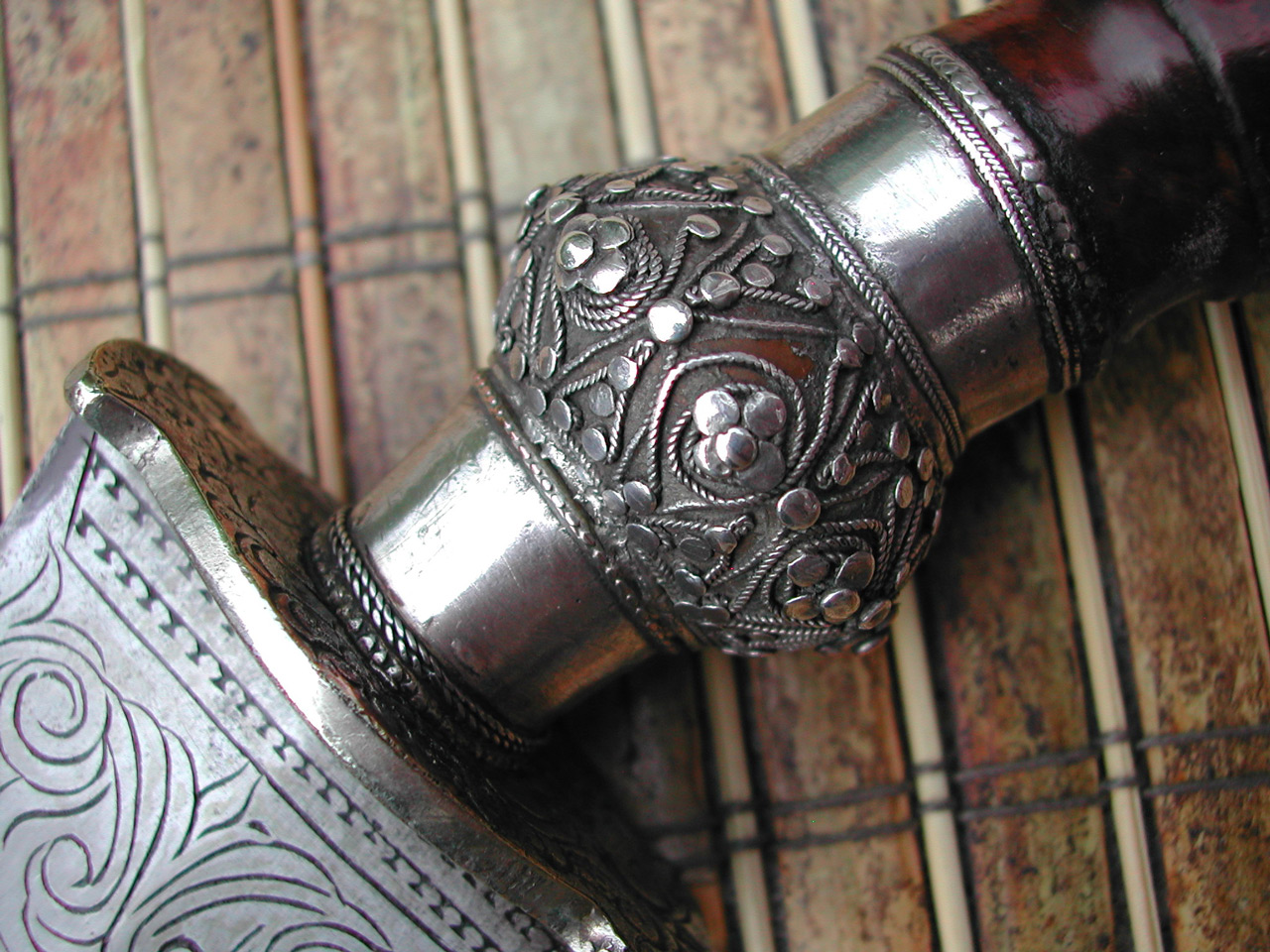 A forum member had this and I couldn't pass it up. 14 3/4" (375mm) overall length. Laminated blade and lovely wood. Nice fittings with a silver wash or overlay, I think. Thanks Rick!