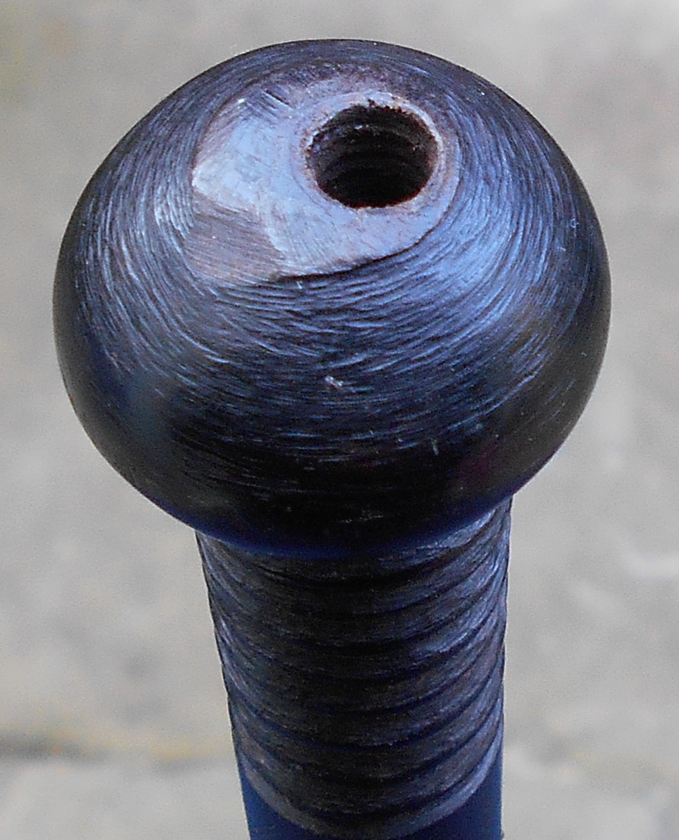Long standing members probably know that I like this sort of thing. Just received this piece. Sadly it has been in the hands of a collector in the past, the era when they used to drill holes in clubs and other wood artifacts to stand then on a pin stand. My fist impression is that it is African but it could be from places like the Solomon Islands. The use of a file not only as a tool to help form the item, but also to add a decorative finish. Reminds me of some African bladed weapons. However the spear part does make me question an African origin a little. 65cm long. I show it next to a piece I have high regard for, which also has a mystery origin. I like the miniature coconut top.