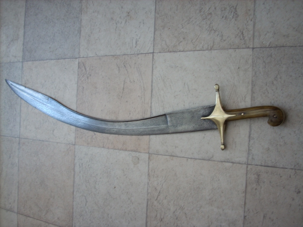 Could anyone please tell me if this is a Turkish Kilij or Pala with an approximate idea of its age and if your eyes are sharp enough what it says in the worn gold cartouches.