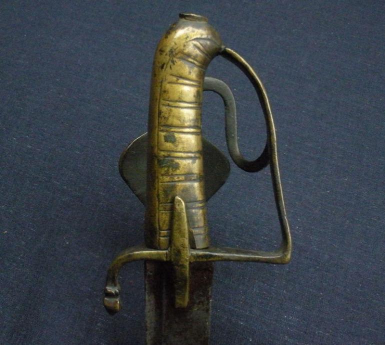 Corrado26, thank you for that other possibility concerning abbreviated regiment marks. I hadn't thought about the X standing for 10th! A definite possibility... Hello, Jim you ole' sea dog! Knew I could bring you out with this curiosity! I hadn't thought about a possible Mexican connection following a French style. I'll try to do some research in that area (and for that matter, on S. American imported swords, as many of those countries were receiving German and French weapons). Thanks for taking the time to look up that information. I must admit that I had hoped for French or Dutch, but that's how it goes when you take a chance on a 'one off' sword. More research might still produce clearer answers. The hilt on mine isn't a solid cast brass hilt, but in fact, two pieces. There is a German sword in Neumann's with the EXACT brass grip and same shaped quillon, so I still think mine is closer to early 19th. BTW, I'm driving to Beaufort, NC in the AM for the Pirate Invasion festival doing some sales/book signings! Gotta love it if it's pirate! CC, good to hear from you again as well and I also miss the naval stuff, but Fernando has a fantastic boarding ax (pair!) on that other thread! Hope to see more nautical stuff come up. Shakethetrees, what an awesome piece you have there! Was this militia involved in any conflicts or simply present to preserve community order? It does indeed resemble the French grenadiere pattern closely. |