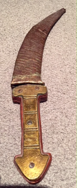 Hi, I wrote that I have seen similar daggers before. Here is one. It is a local ethnic product. It comes from Jubata al Khashab in the Golan hights. The one presented in this thread is much nicer, but the similarity is striking.