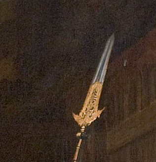 During this period there were two types of partisans in use in the Netherlands, one with an openwork effects (ajour),fe mermen and mermaids. (see a rare spontoon from my collection which, to my knowledge no second copy is known, beyond on the paintings) and a closed Version.