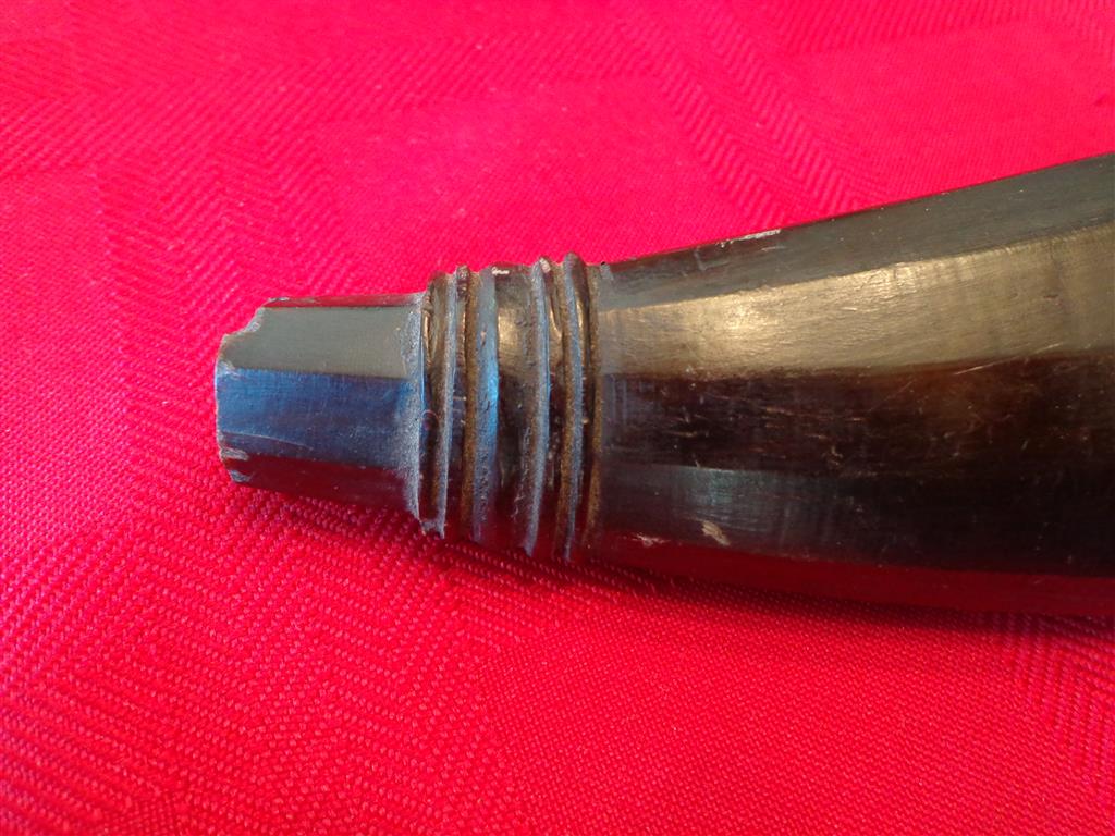 While commenting on a horn Thread recently posted by Member RobT, I was reminded of an unusual horn I bought a few years ago, but had forgotton about. So I dug it out of all my ruble LOL and Post it here to ask if anyone has an idea of it's origin. The seller thought it might be South African. But really had no idea. Nor do I.