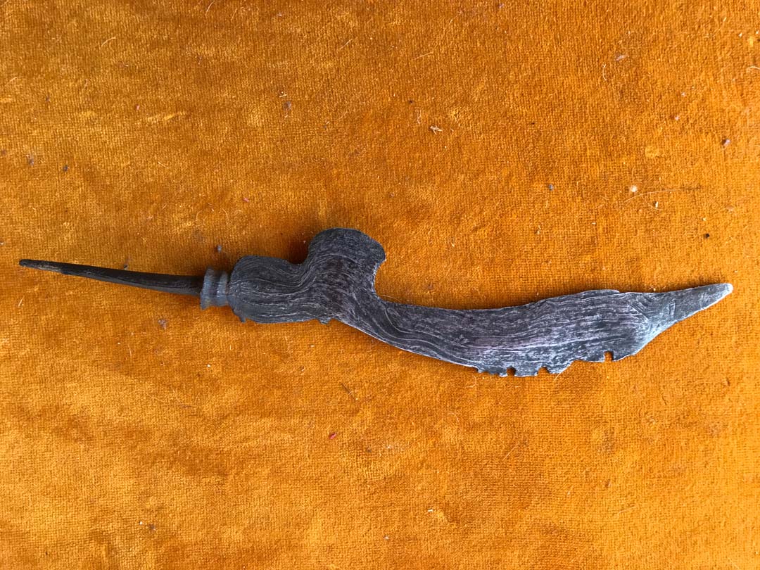 The grouping for now has been detemined just by the rough shape. We didn't get around to groupe them by metal. We just agreed upon the fact that these are probably genuine and have considerable age. We pondered upon funtion but could not find any ground for the fact that kudi were once 'blade breakers'. There are way too thin an too light so serve that purpose. Look at the ones which have both features of keris and kudi or jimat. There is a area where they share features. This obscures the function even more. |