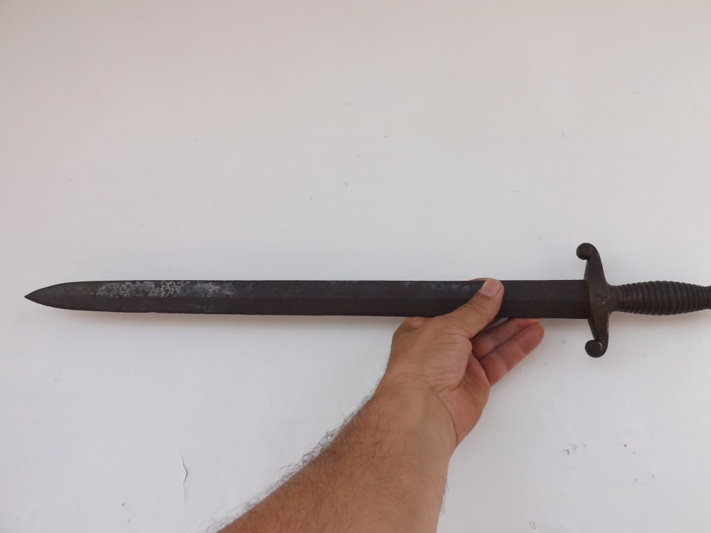 This is an other ranks, artillery or possible band hanger from around early 1800s, possibly French, but the European armies all used these forms in those times. Like the well known briquettes, these were cast hilt munitions grade arms so made in huge quantities.