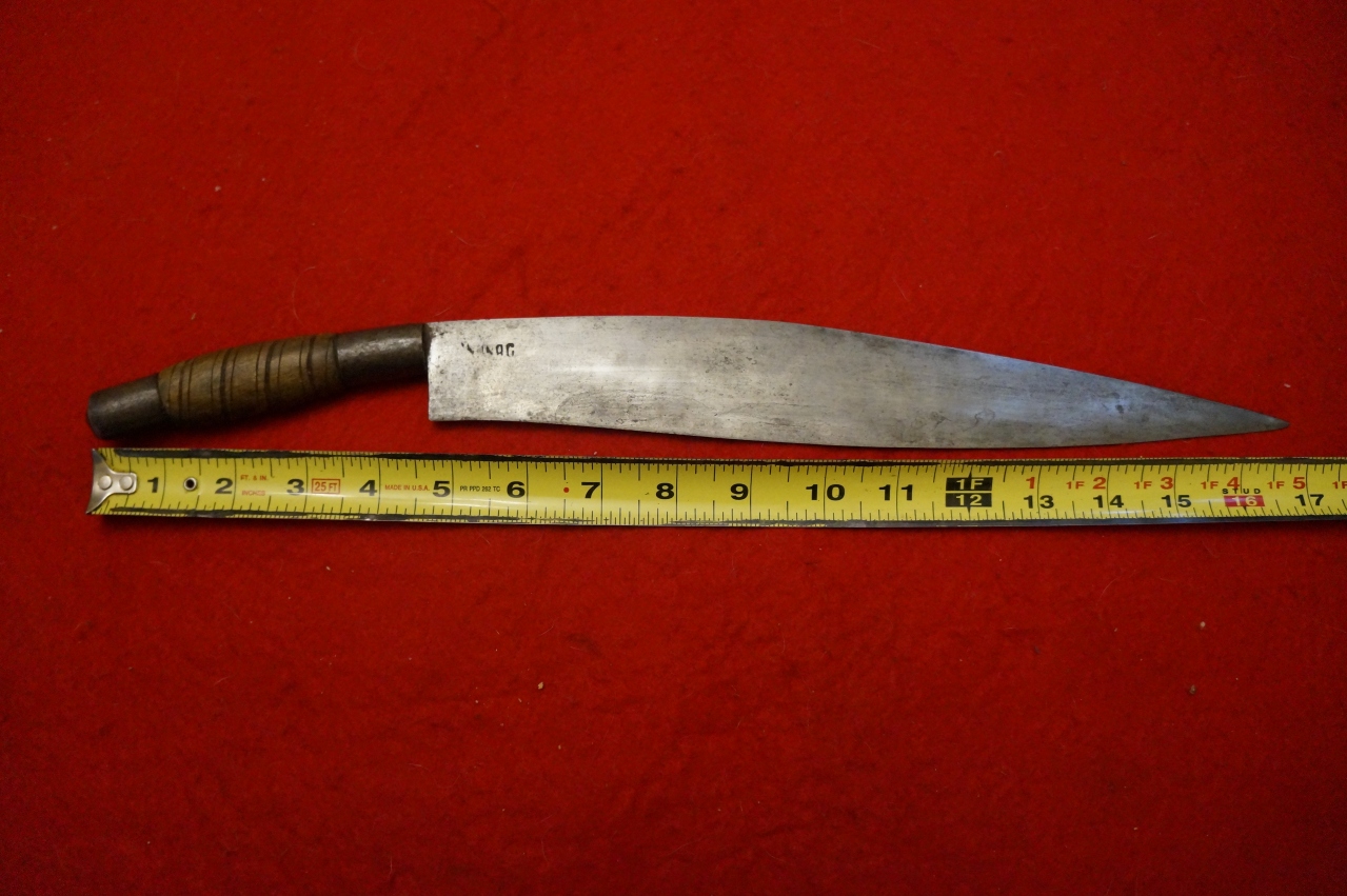 Yes, Philippines is the origin of this one, and it is most likely from central Luzon. The shape of the blade is very similar to the Negrito hundang which also has the tang arising at the spine of the blade. You can find discussion and see an example of a hundang here http://www.vikingsword.com/vb/showpo...7&postcount=18 The grip is a typical Tagalog style, with full length tang, and the wooden core would once have had twisted wire (iron or brass) in the grooves. Like Sajen, first half of 20th C. would be my guess. Nice knife. Ian. |