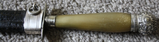 thanks for you reply , after researching his name all I could see was bowie type knives and made me wonder if this has had a different handle , also the end of the scabbard is open ,should this also have a silver mount ?