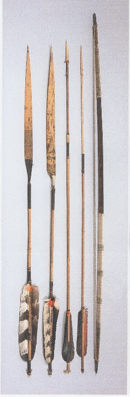 I would guess the very long one is for fishing from a canoe and the other two for hunting birds and larger mammals respectively ?? The shafts are made of cane or reed. Comments are welcome; anyone else on the forum interested in tribal/ethnographic archery ? |