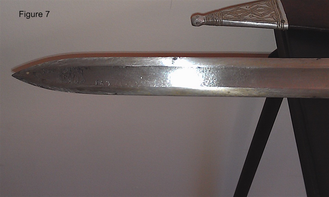 Lew had one of the few in this style that I have seen (Figures 6,7). Note the Hadendawa tassel at the top of the hilt. These blades seldom, if ever, have European makers' marks—I know of none—although others contain inscriptions. In 2011, DaveS presented a superior El Kar fullered sword with possible links to Ali Dinar. It had no maker’s mark, but was highly engraved with Arabic text in the central channel. See on this link: http://www.vikingsword.com/vb/showthread.php?t=13142 . Last edited by Ian; 4th September 2018 at 07:25 AM. |