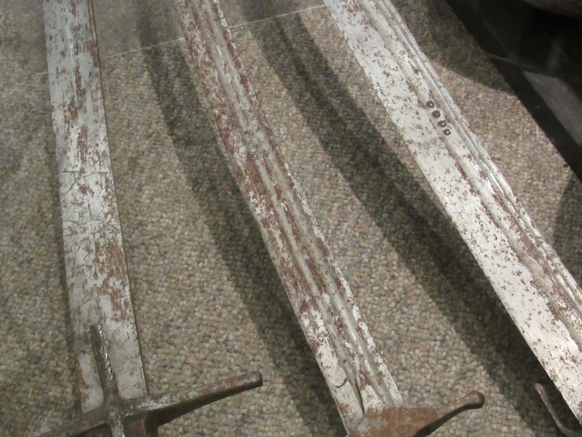 Anyway, let's start with some pictures. The exhibit is quite impressive, with a symmetric arrangement of nimchas of various length flanking a few Ottoman parade shields. Note how many guards are missing the knuckle bow - was it removed on purpose? During those times bucklers would have been used, so having a knuckle bow to take hits perhaps was not as important. I will leave it to HEMA enthusiasts to answer that one. Last edited by TVV; 25th April 2019 at 02:20 AM. |