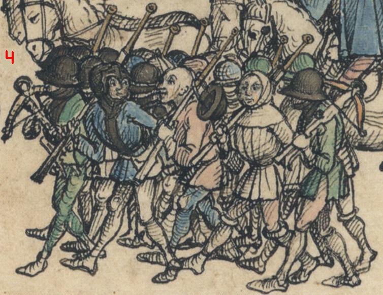Your photo no. 5 shows some of a large number of haquebuts with wrought iron barrels, ca. 1460-1500, mostly of Nuremberg and Bohemian make, all preserved at the Západoceské Muzeum Pilsen, Czechia. Some of their stocks are original while others seem to be later reconstructions. Unfortunately this is hard to determine nowadays because, after left in virtually untouched and perfectly patinated condition for hundreds of years, all of the Pilsen guns were exposed to heavy 'restoration' measures in the 1980's, often with extremely sad results for the pieces, especially the stocks. E.g., large pieces of felt were nailed to the rear flat ends of the buttstocks, a rather 'ingenious' method indeed of preventing them from 'damage'. All the wooden surfaces were crudely smoothened and varnished thickly. As I said, the outcome is very sad and - what is even worse - irreversible and it is really hard to tell what is old and what is new, and it is absolutely impossible to tell what they looked like orginally.