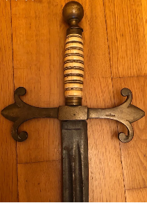 This one seems to be a French Cuirassier blade mounted with a brass masonic hilt and bone grip. It was rather cheap. It will be interesting to see what is etched on the back. 93cm of the blade and 110cm total length. I say masonic, but I suspect in Catholic countries some of these swords were originally in the hands of sculptures of Saint George, Santiago, Archangel Gabriel, Saint Katherine... and other weapon carrying saints. Last edited by midelburgo; 14th August 2020 at 12:46 AM. |