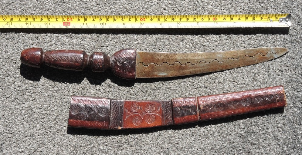 I was told that it was purchased in The Gambia, West Africa, probably as a souvenir. Does not necessarily mean it originated there........ Stu |