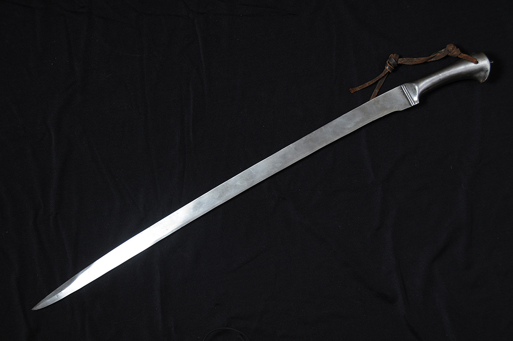 I bought this item a few years ago, but I can't figure out what type of weapon it is and what region it belongs to. At first, based on the shape and material of the handle, I assumed that it was an Afghan weapon. However, the shape of the blade and its point are more similar to Indian weapons. However, I have not seen similar blades. Does anyone have any ideas about this subject? I will add a little description: the total length is 79 cm, the length of the blade is 67 cm. The sheath is of recent manufacture. |