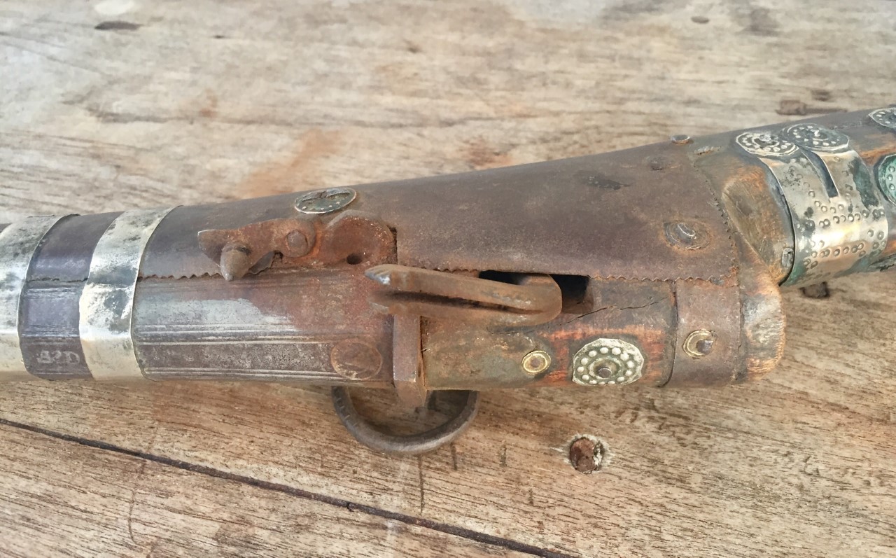 I had one of these type of guns at one time. It was matchlock with a lot of applied silver, a large wooden butt "pad" with some bone inlay. Can anyone say which parts/adornments were usually made/added in Arabia ? Presumably the basic gun was manufactured in India ??